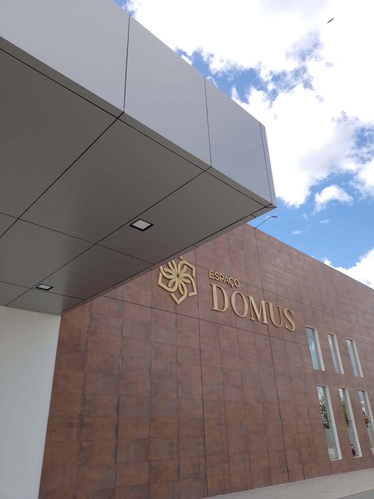 Projeto de um espaço de eventos climatizado pensado com grandes vãos de estrutura metálica e mezanino de laje nervurada.
