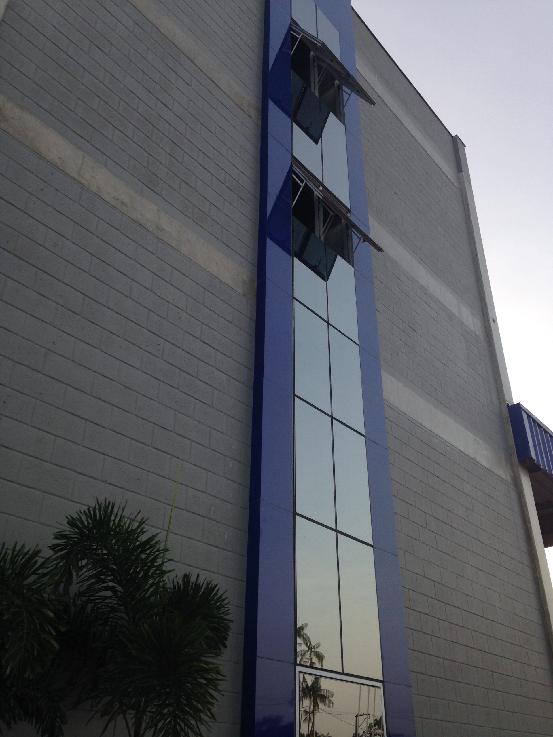 Empresa de distribuição de alimentos, congelados, resfriados e secos. Solução inovadora para casa de máquinas em estrutura pultrudada.