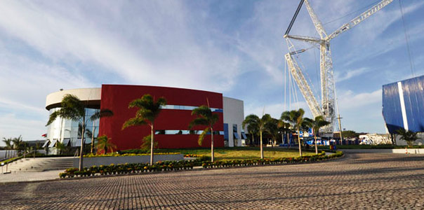 O Empresa de engenharia de movimento com pátio de manutenção de guindastes. Destaca-se a reciclagem de estruturas metálicas usadas no galpão de serviços.