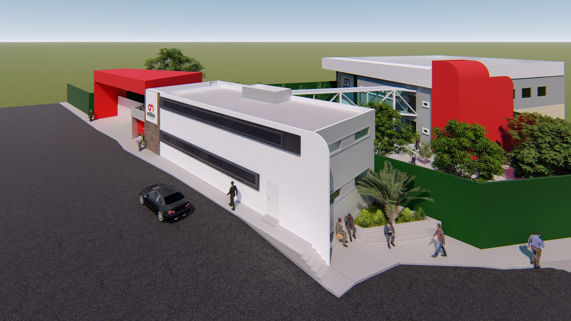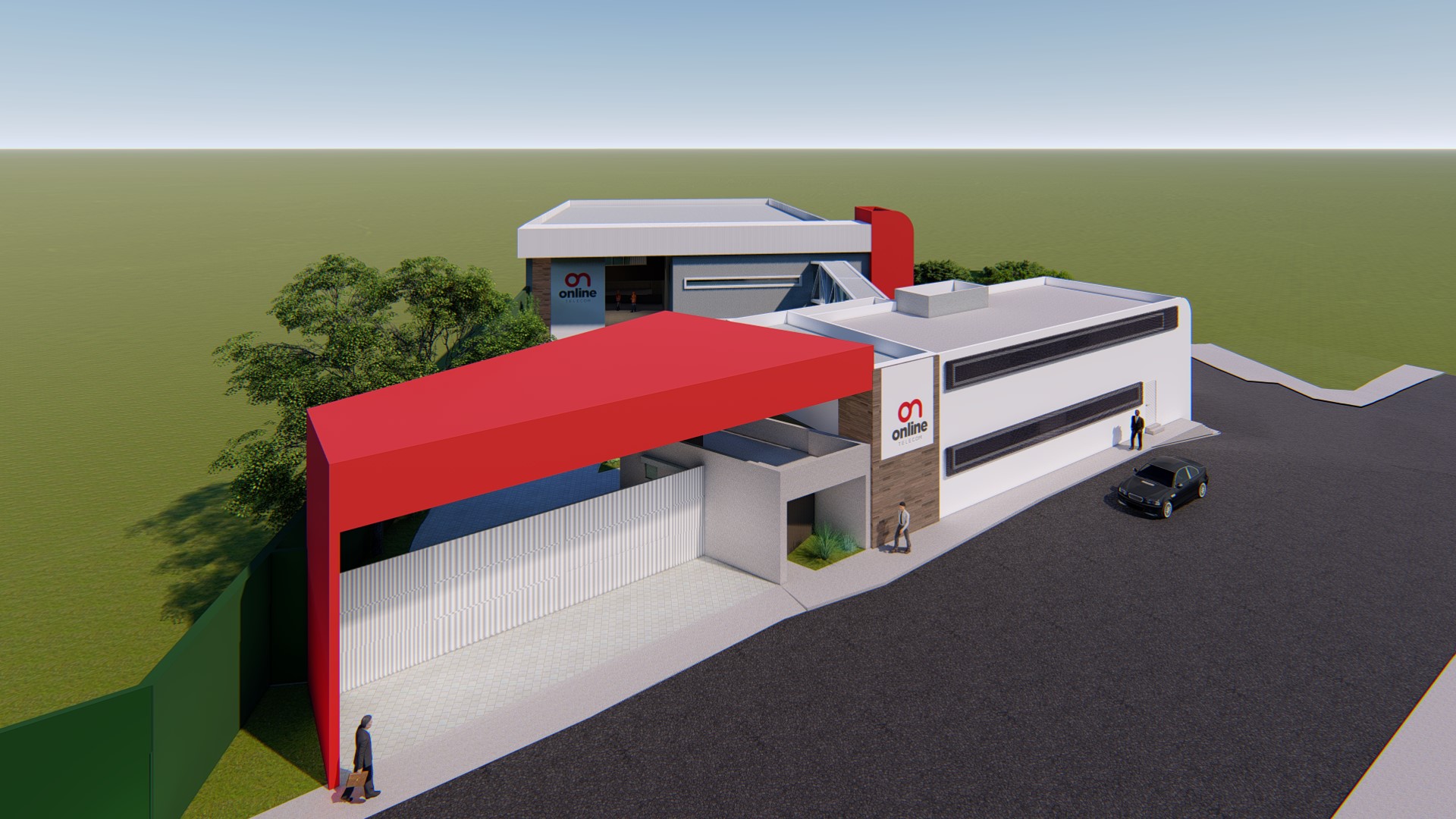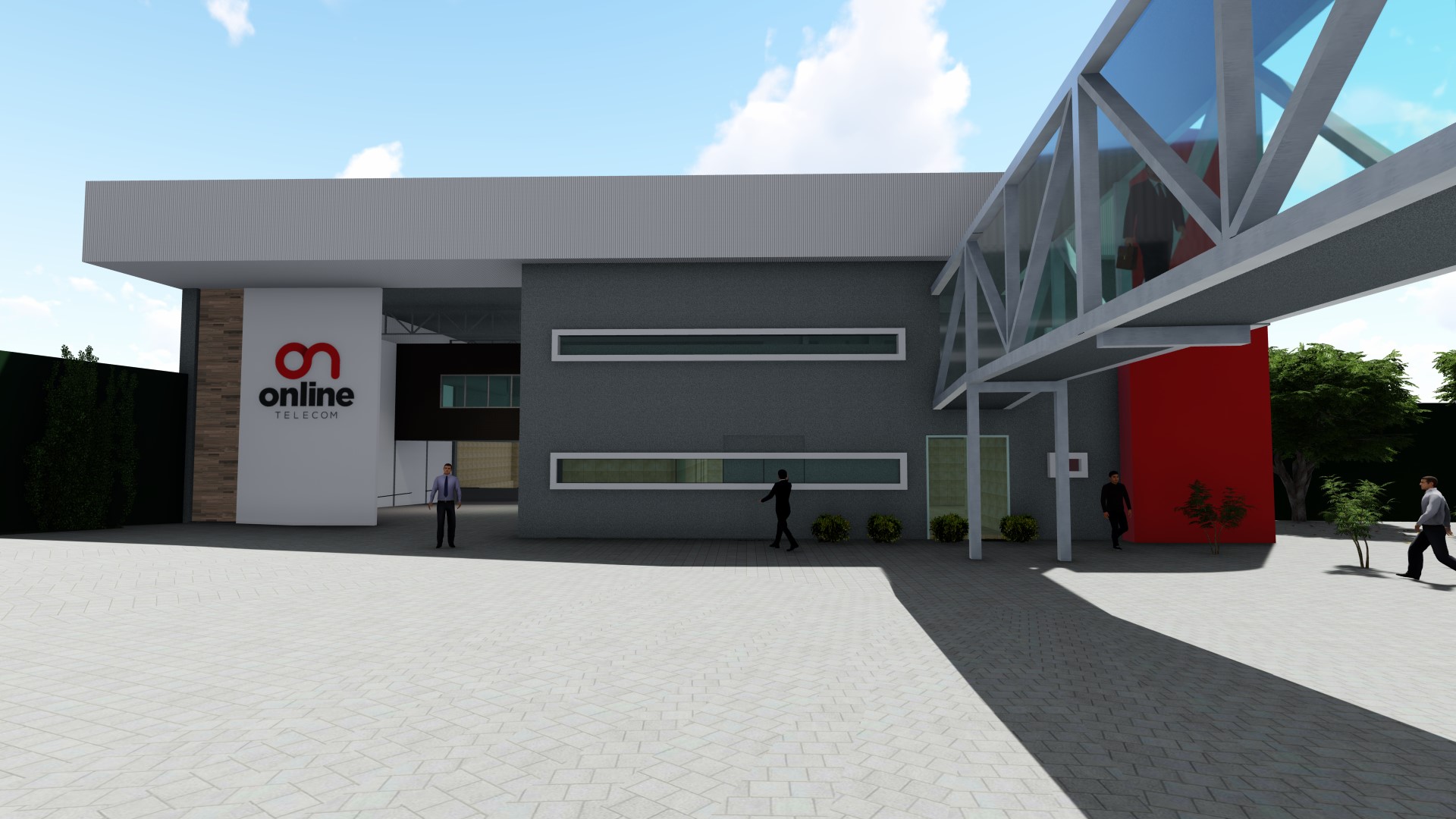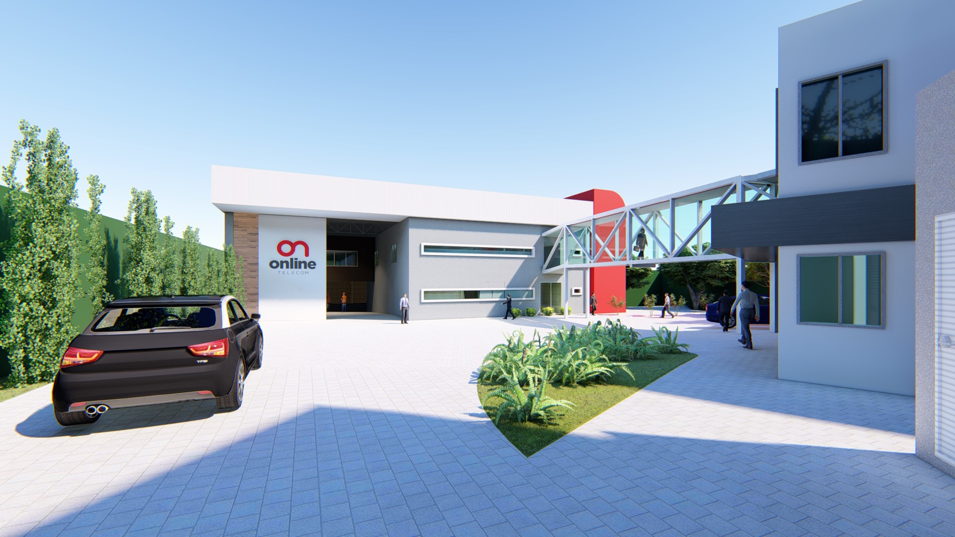 Projeto de reforma e ampliação da sede da operadora de internet Online. O projeto foi pensado em etapas para permitir o funcionamento da empresa durante a obra.